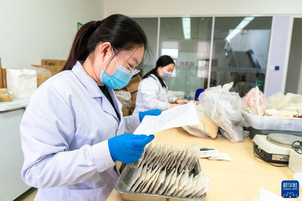 4月12日,于萌(左)在青岛海水稻研究发展中心的实验室里整理种子。