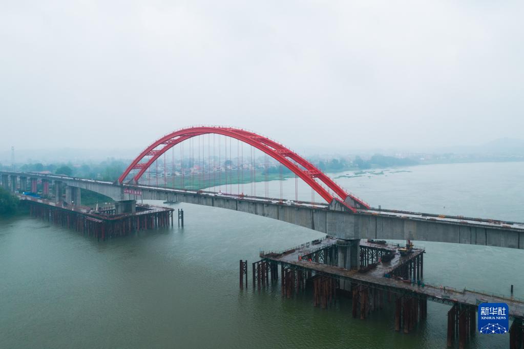 这是4月15日在湖南省益阳市拍摄的常益长铁路资水特大桥(无人机照片)。