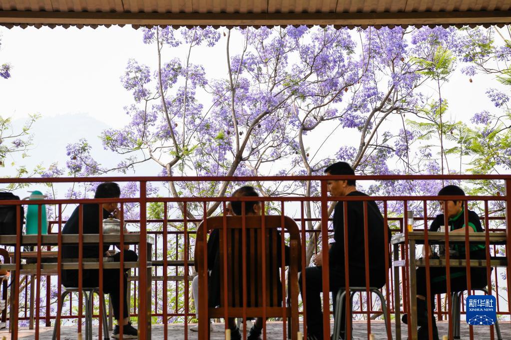 4月15日,游人在攀枝花市西佛山的凉亭内休息。