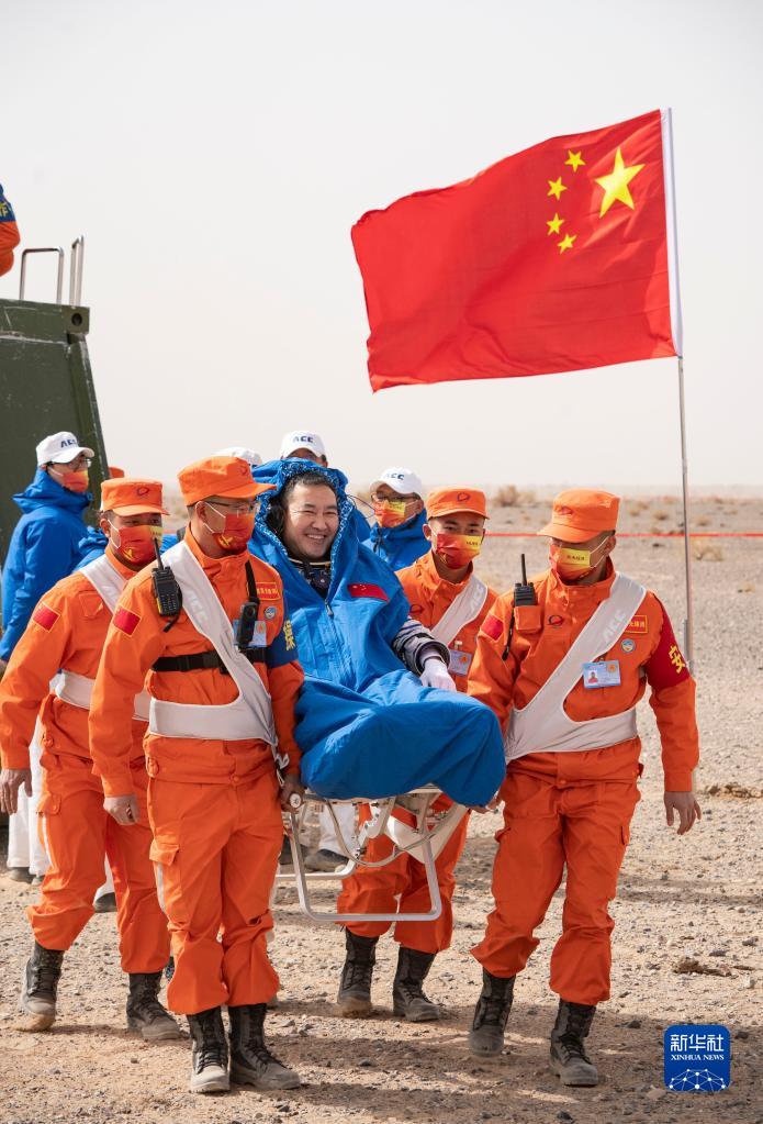 4月16日,神舟十三号载人飞船返回舱在东风着陆场成功着陆。这是航天员翟志刚安全顺利出舱。