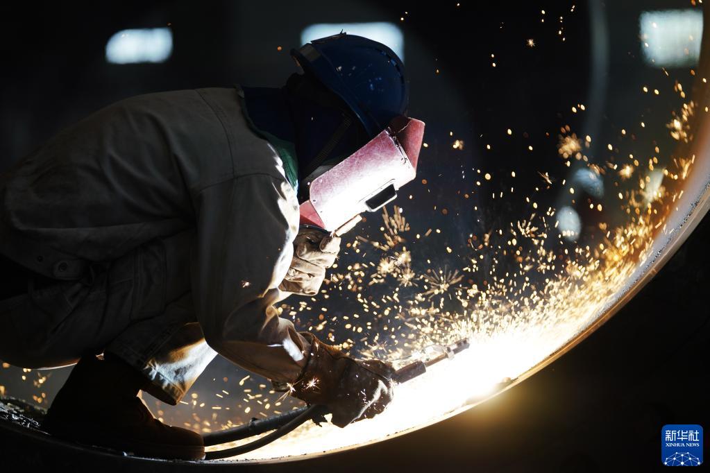 4月14日,在哈电集团哈尔滨锅炉厂有限责任公司车间,工人在进行生产作业。