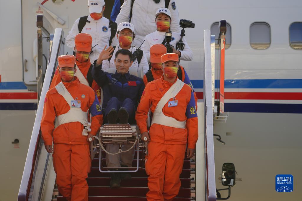圆满完成神舟十三号载人飞行任务的航天员翟志刚、王亚平、叶光富,于2022年4月16日下午乘坐任务飞机平安抵达北京。空间站阶段飞行任务总指挥部领导和成员到机场迎接。