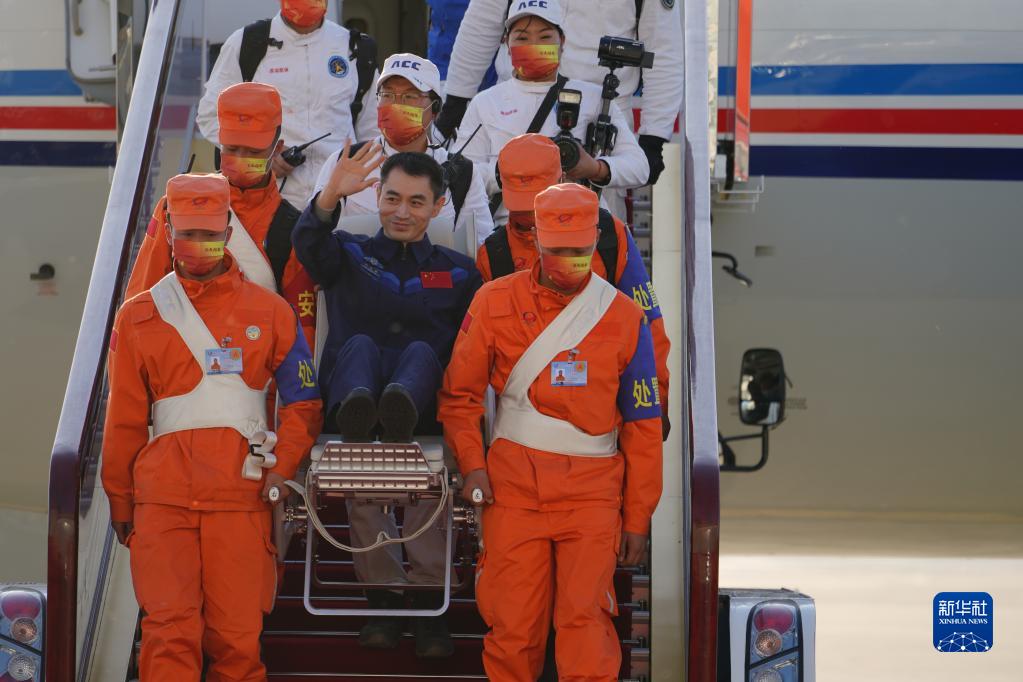 圆满完成神舟十三号载人飞行任务的航天员翟志刚、王亚平、叶光富,于2022年4月16日下午乘坐任务飞机平安抵达北京。空间站阶段飞行任务总指挥部领导和成员到机场迎接。