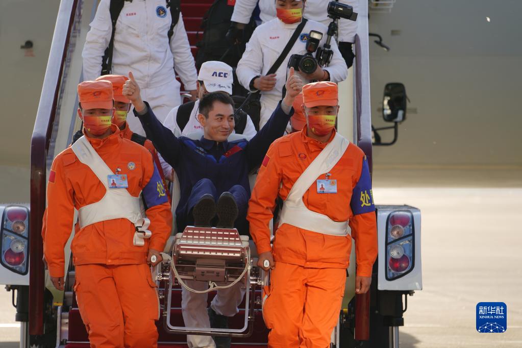 圆满完成神舟十三号载人飞行任务的航天员翟志刚、王亚平、叶光富,于2022年4月16日下午乘坐任务飞机平安抵达北京。空间站阶段飞行任务总指挥部领导和成员到机场迎接。