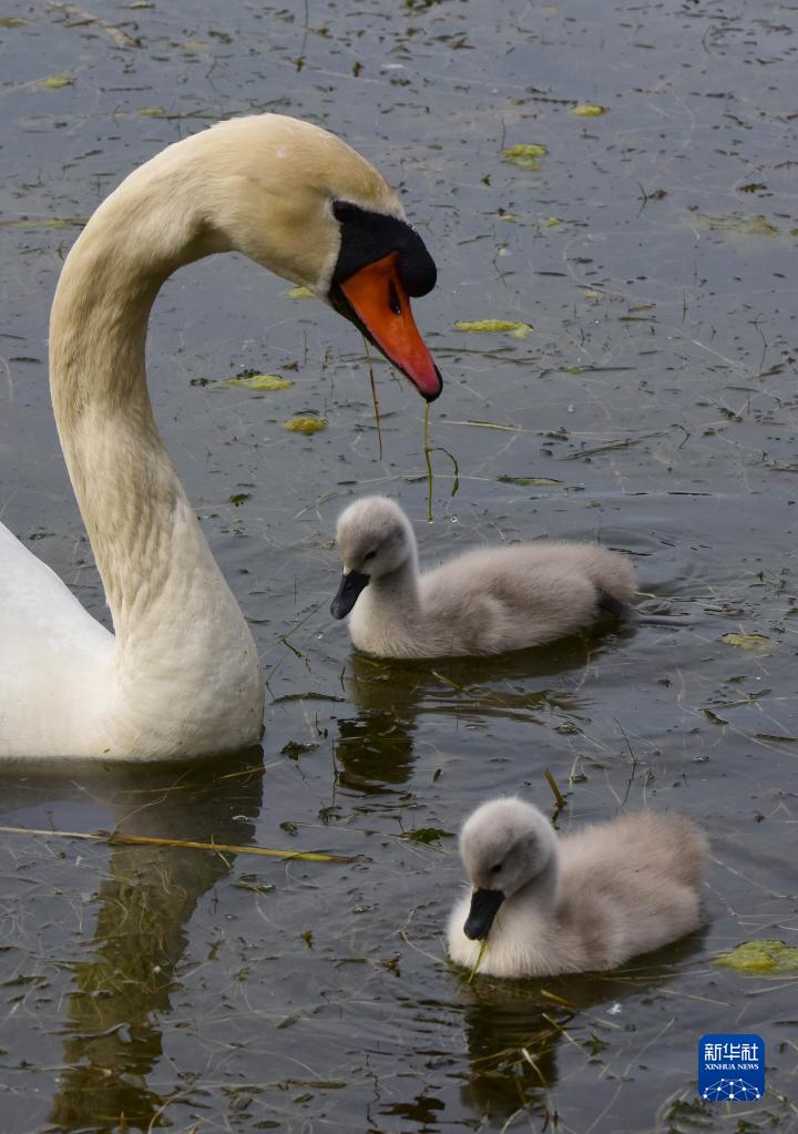 近日,在河南省郑州市北龙湖湿地公园内,一对野生疣鼻天鹅自然繁育孵化出9只天鹅宝宝,十分惹人喜爱。据介绍,9只天鹅宝宝目前已经度过了初生危险期,发育良好。