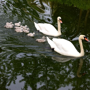 近日,在河南省郑州市北龙湖湿地公园内,一对野生疣鼻天鹅自然繁育孵化出9只天鹅宝宝,十分惹人喜爱。据介绍,9只天鹅宝宝目前已经度过了初生危险期,发育良好。