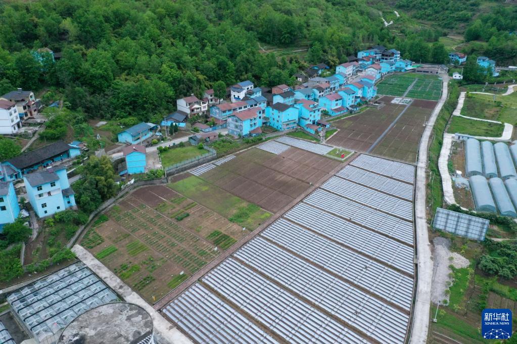这是4月14日拍摄的位于石柱县三河镇大林村的武陵山现代农业科技产业园(无人机照片)。该产业园主要开展马铃薯、辣椒等作物品种选育、试验示范、成果转化和推广培训等工作。