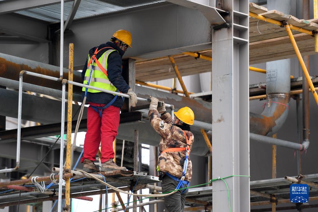 4月16日,在西宁经济技术开发区南川工业园区一企业建设工地,工人在施工作业中。