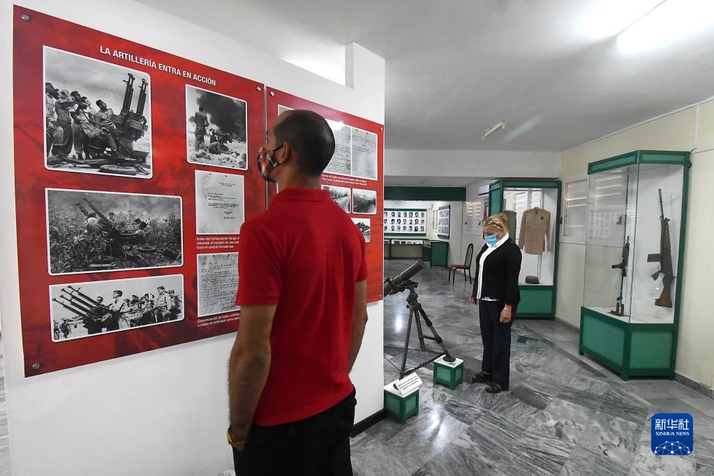3月30日,参观者在古巴猪湾地区的吉隆滩博物馆观看展品。