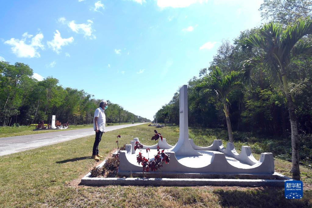 3月30日,在古巴猪湾地区,一名男子站在一名“猪湾事件”遇难古巴人的墓前。