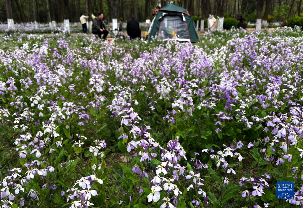 4月17日,市民在京城森林公园内露营休闲。