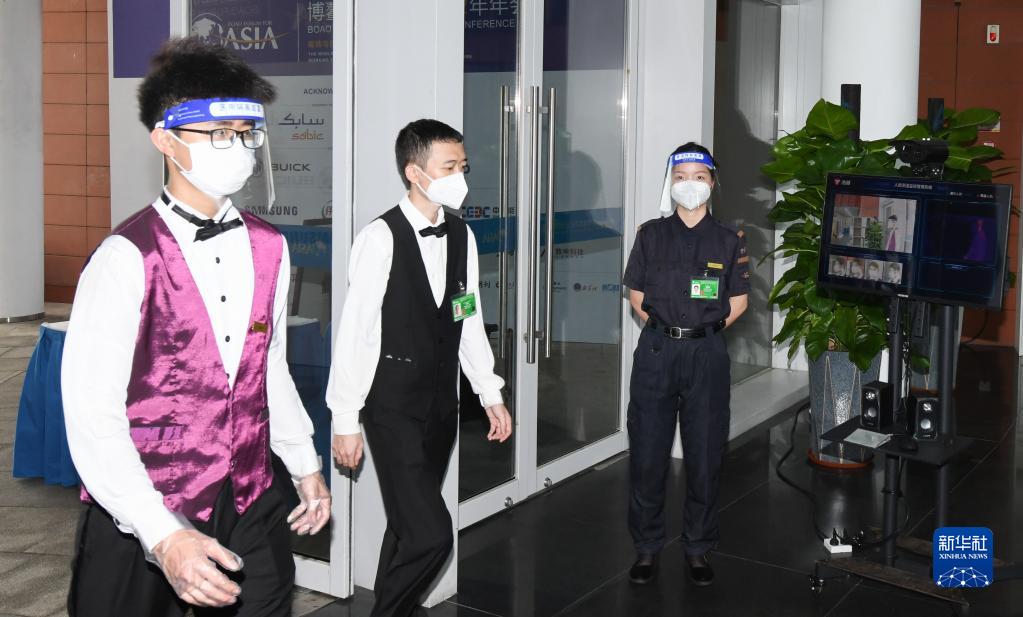 4月18日,在博鳌亚洲论坛年会新闻中心,人脸测温监控管理系统为进出人员测温。