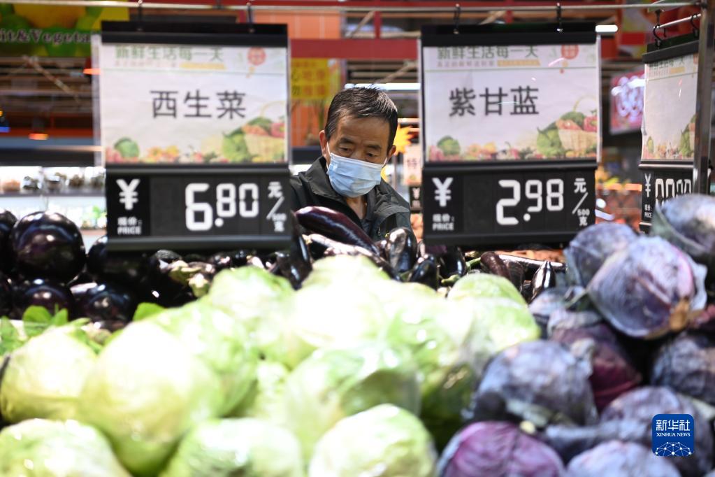 4月18日,在西宁大十字百货商店有限公司广场店,市民选购蔬菜。