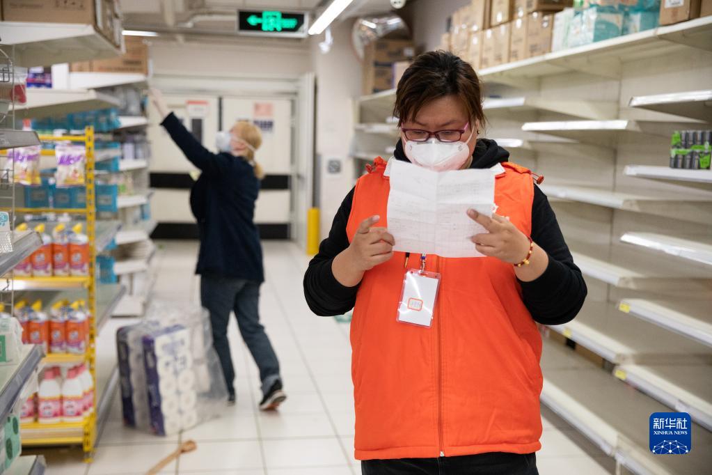 4月17日,广福居委会工作人员许雯静、陈艳、俞静芳带着需求清单,骑着电动车,前往附近的一家大型超市帮居民采购。结束后,她们如“蚂蚁搬家”,多趟来回,运至居委会。再按家庭细分,分装好并贴上明细清单,一户户送给居民。