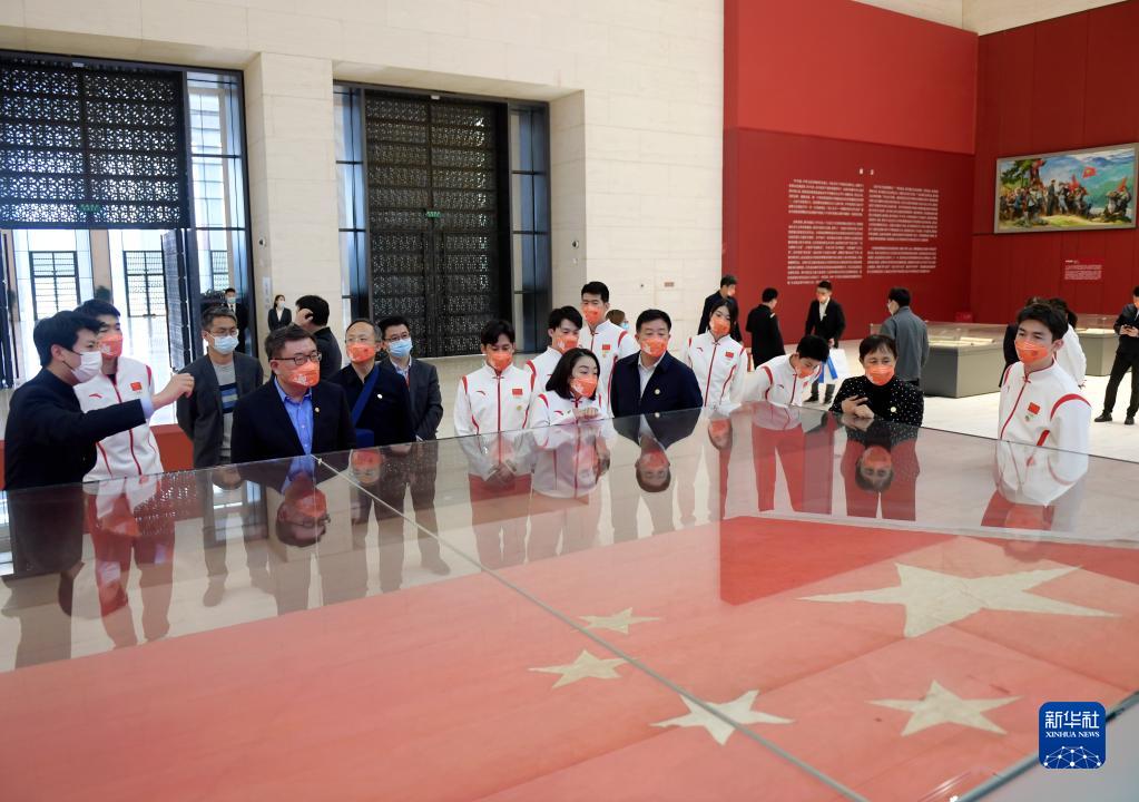 当日,国家体育总局冬季运动管理中心组织武大靖、徐梦桃等部分在京运动员、教练员赴中国国家博物馆参观《复兴之路》展览。