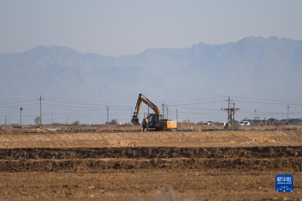 4月19日,在内蒙古自治区达拉特旗王爱召镇,工作人员在田间开挖水渠,为春耕春播做准备。