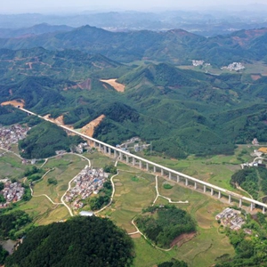当日,位于广西马山县的贵南高铁位升双线特大桥最后一榀箱梁架设施工顺利完成,标志着贵南高铁广西段正线桥梁工程全面竣工。