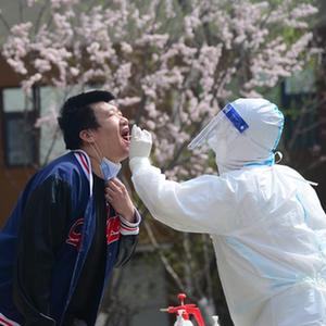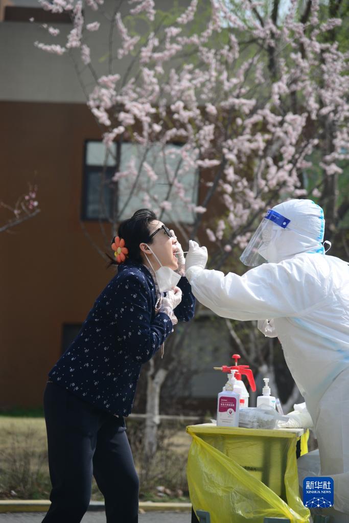 4月20日,在长春市一处核酸检测点,居民接受核酸检测采样。