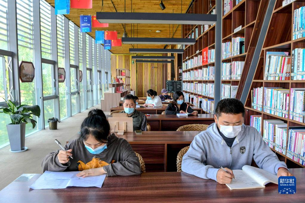 4月20日,读者在安徽省铜陵市滨江生态公园“码头书屋”阅读。