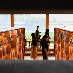 坐落于成都兴隆湖畔的中信书店共收纳近万册书籍,书店四周被碧水青草环绕,临湖一侧是一面大大的玻璃幕墙,一直延伸至水下。