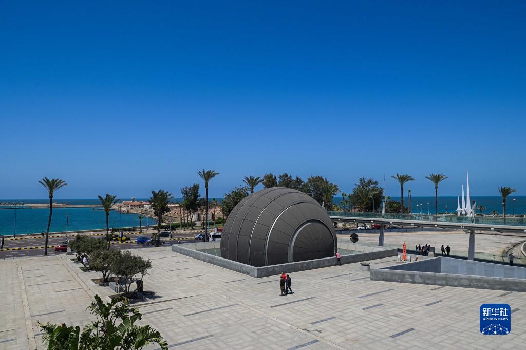 这是4月19日在埃及亚历山大拍摄的亚历山大图书馆外景。