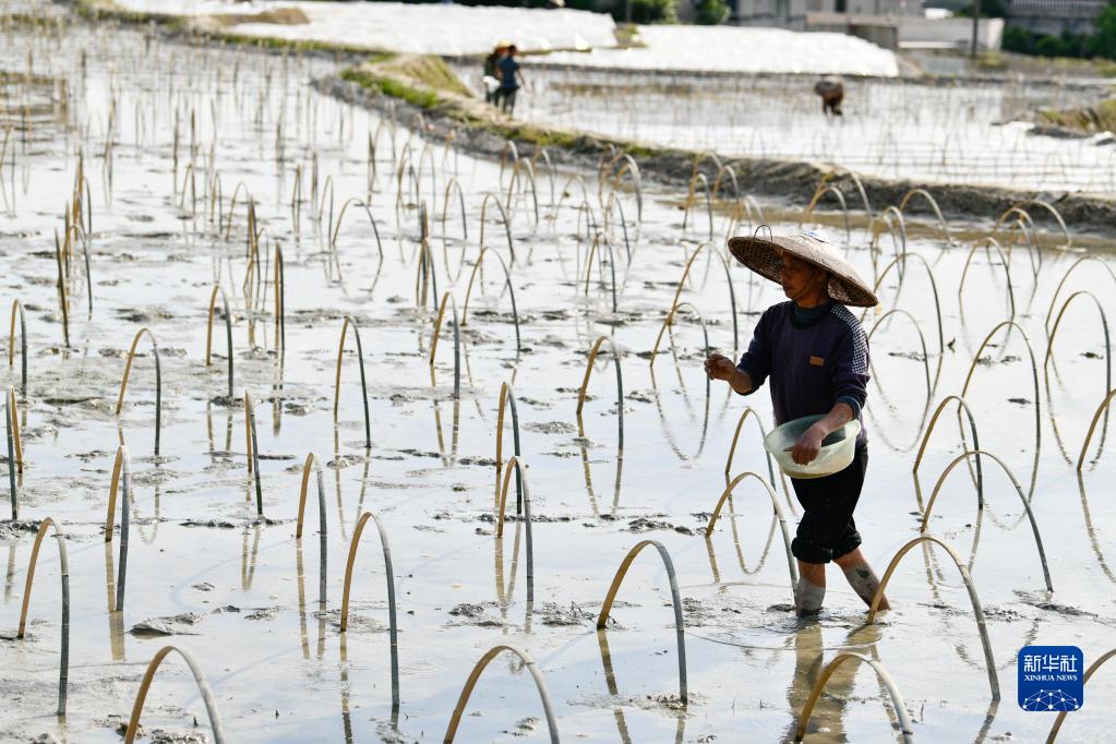 谷雨时节,春光明媚,农民抢抓晴好天气劳作在田间地头,构成一幅幅美丽的春日画卷。
