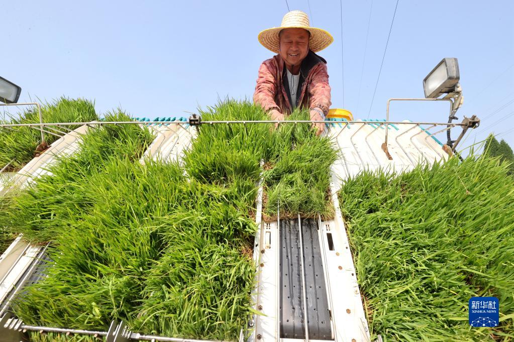 4月20日,浙江省湖州市德清县康乾街道联合村村民在装运水稻秧苗,准备播种早稻。