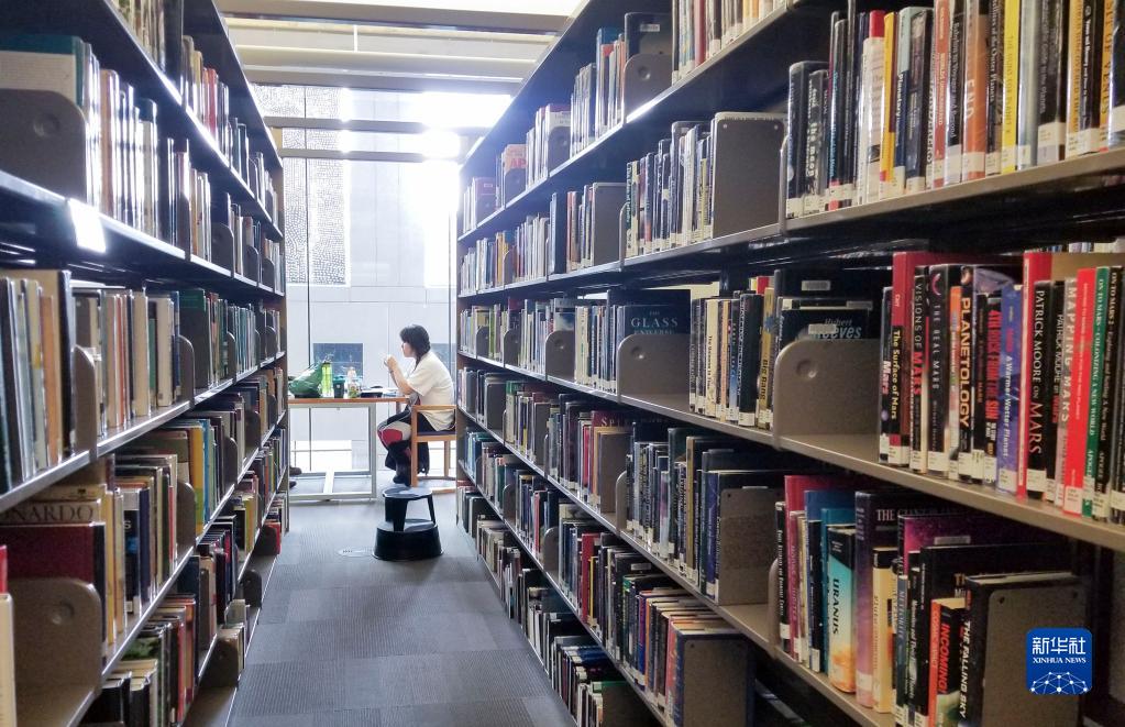 4月19日,一名女子在加拿大温哥华公共图书馆中央图书馆内阅读。