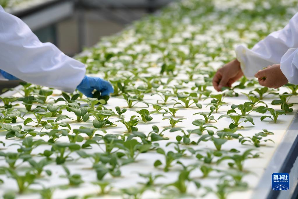 4月20日,工作人员在肥东县安徽现代雾耕农业科技示范园植物工厂里进行日常管理。