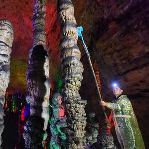 在湖南省张家界市武陵源区黄龙洞景区有一群钟乳石“美容师”,他们定期对钟乳石上的苔藓和其它杂物进行清理,呵护钟乳石的自然生长,让它们以良好的状态展现在游客眼前。