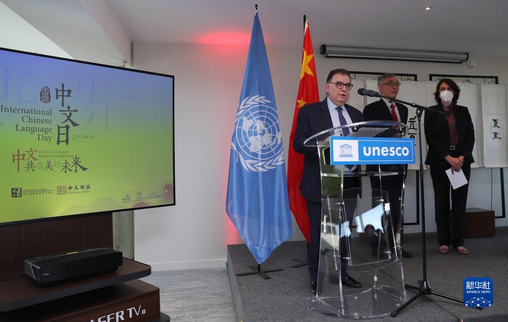4月20日,联合国教科文组织第41届大会主席圣地亚哥·莫朗在位于法国巴黎的联合国教科文组织总部举行的中文日活动上致辞。