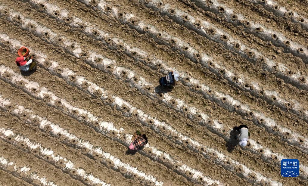 4月21日,村民在贵州省绥阳县风华镇银堡坝区劳作(无人机照片)。