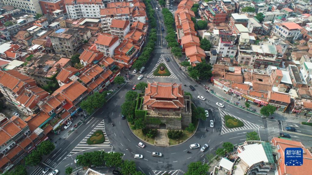 4月21日,车辆环绕着泉州古代七城门之一的朝天门通行(无人机照片)。