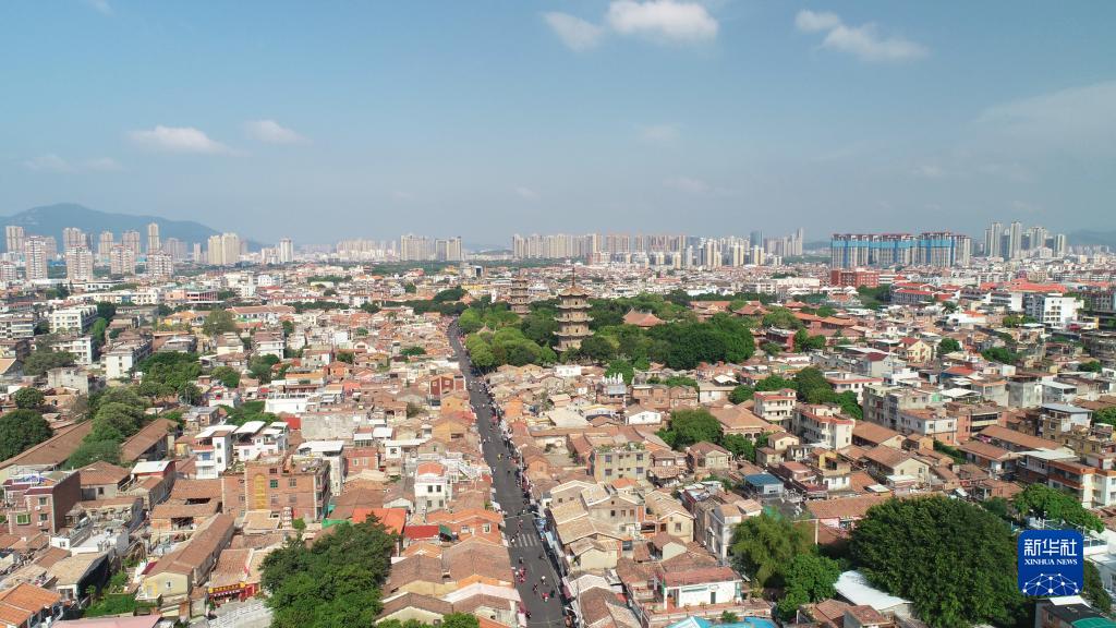 4月21日,市民在泉州市西街出行(无人机照片)。