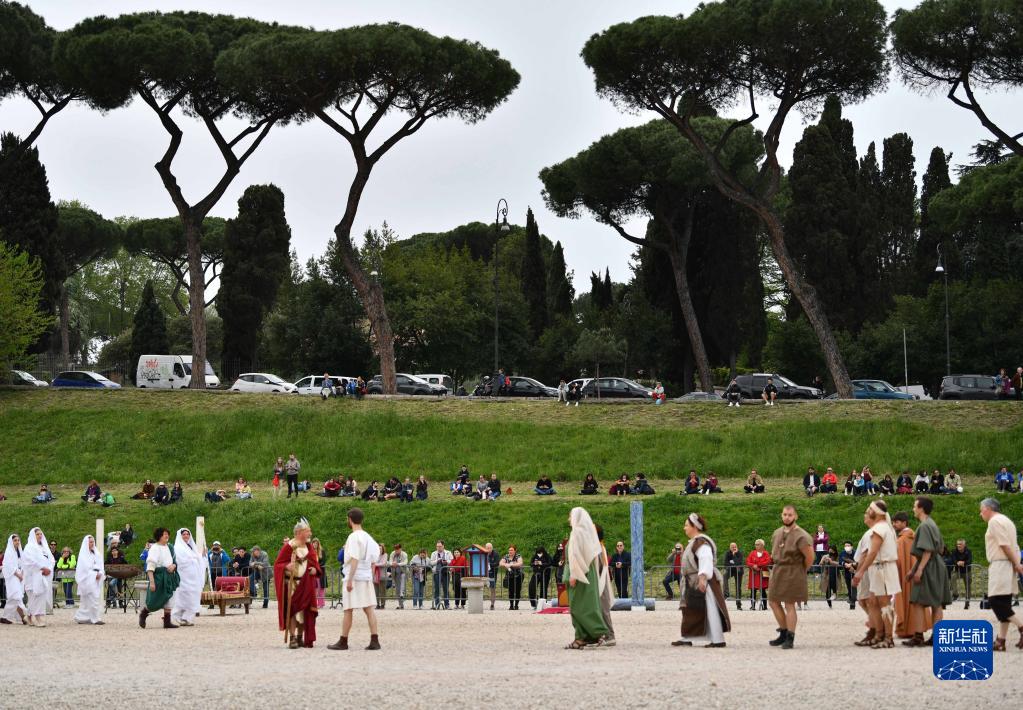 4月21日,游客在意大利罗马观看“重现”罗马建城的活动。