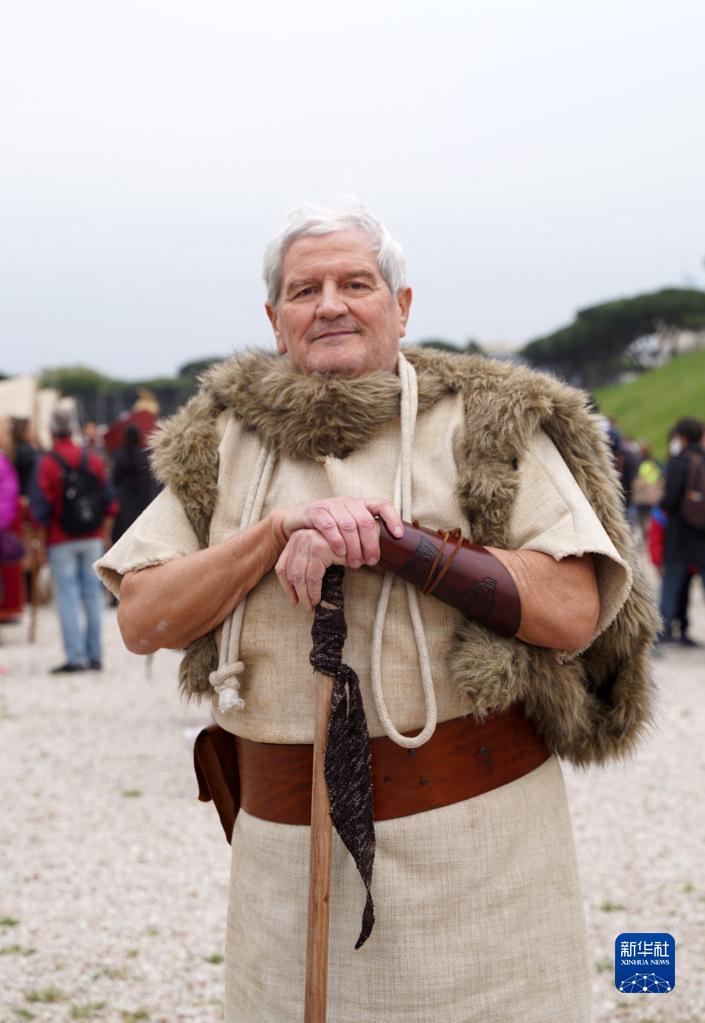 4月21日,一名男子在意大利罗马参加“重现”罗马建城的活动。