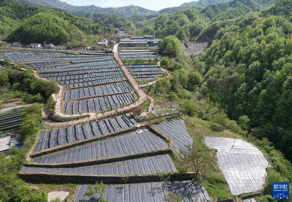 老庵寺村发展的木耳产业(4月21日摄,无人机照片)。