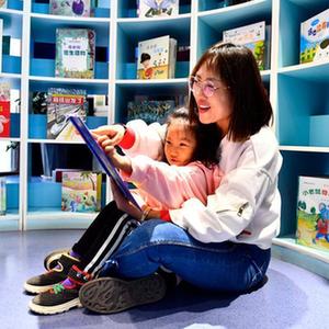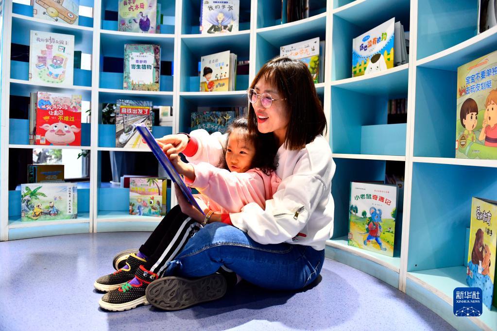 4月20日,在日照市东港区城市书房金港社区馆,家长带着孩子阅读绘本。