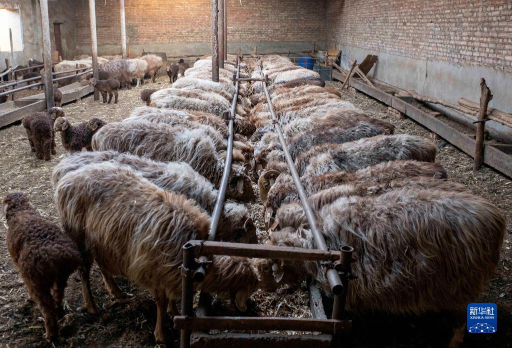 这是在伊力·买买提家棚圈内拍摄的羊群(4月17日摄)。
