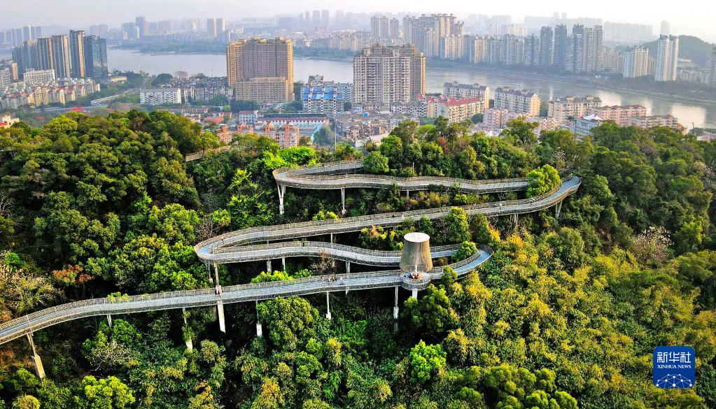 在福州金牛山公园福道拍摄的森林城市景观(2021年3月16日摄,无人机照片)。