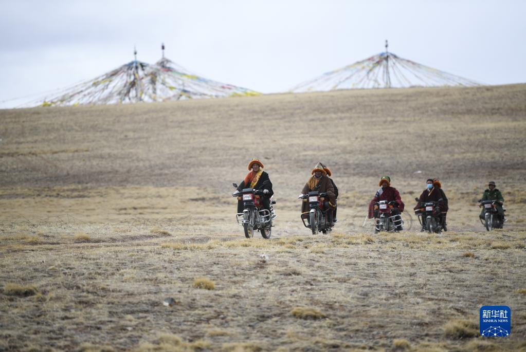 4月21日,在青海省玉树藏族自治州曲麻莱县麻多乡约古宗列曲附近,生态管护员在巡护。