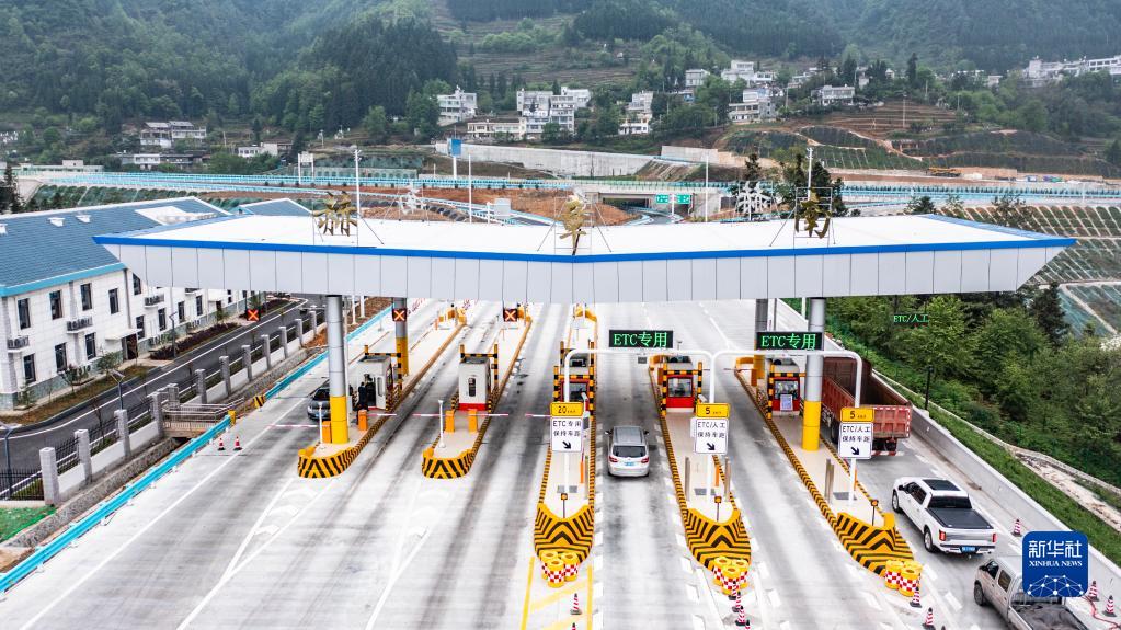 4月22日,往来车辆在赫六高速公路赫章南收费站通行(无人机照片)。