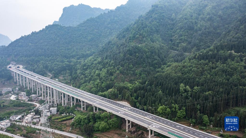 4月22日,车辆行驶在赫六高速公路赫章南至韭菜坪路段(无人机照片)。