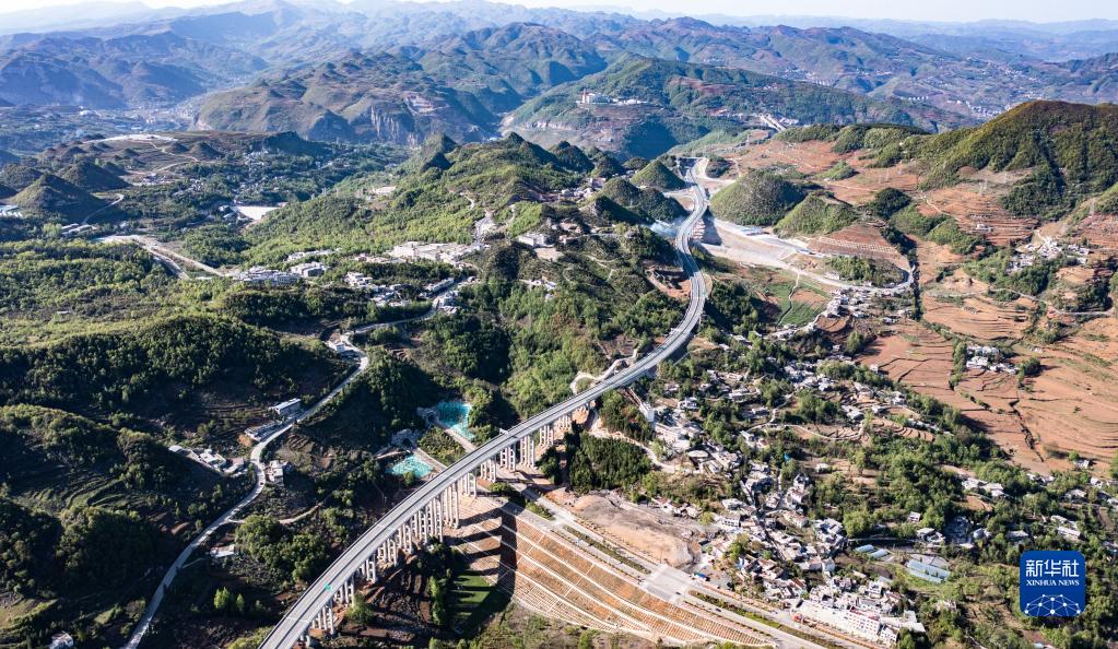 4月20日拍摄的赫六高速公路落飞戛大桥(无人机照片)。