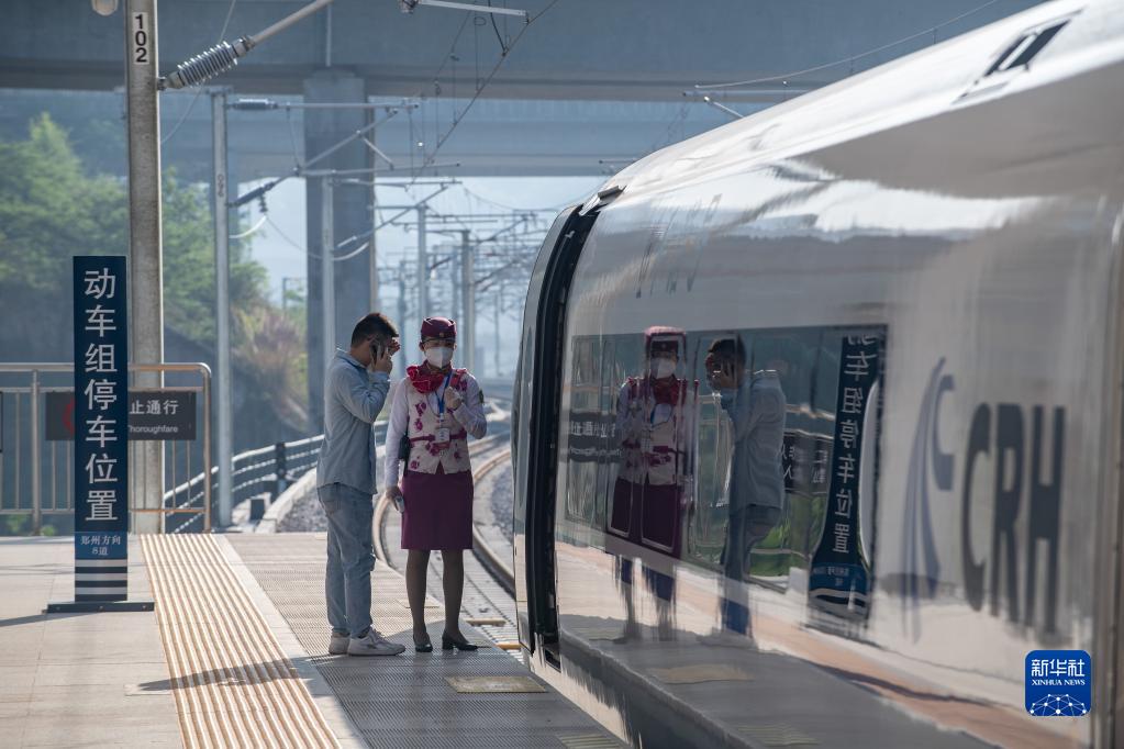 4月22日,工作人员在试验列车发车前在万州北站进行准备工作。