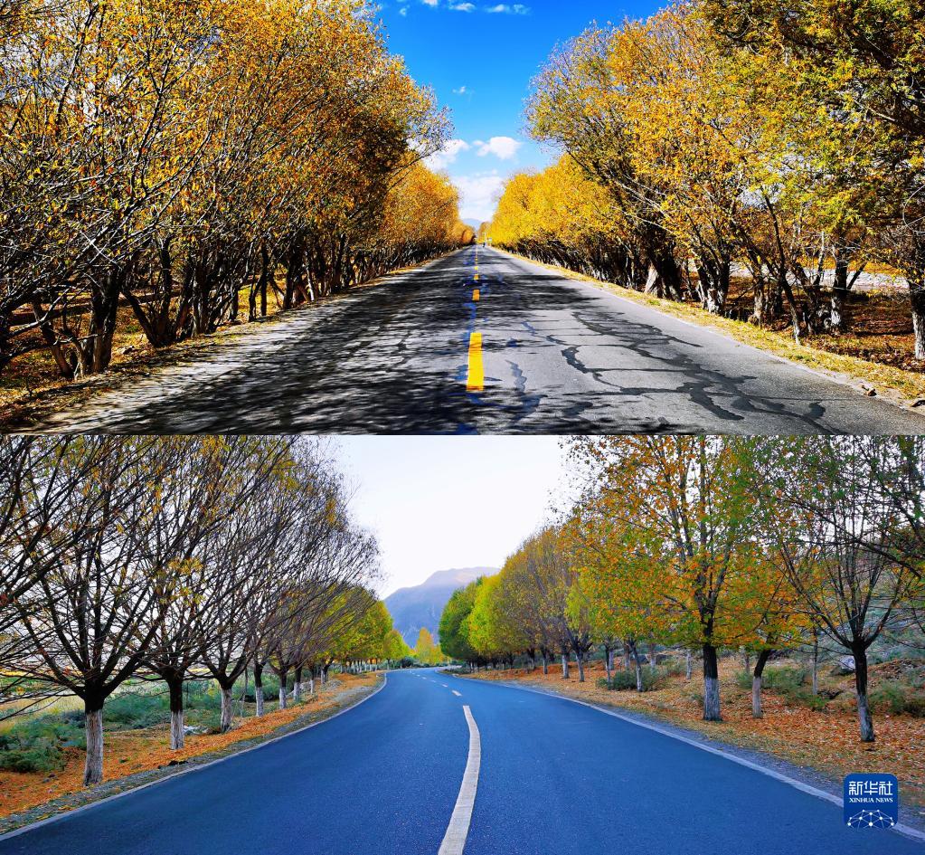 这是拉萨市林周县的乡村道路(手机拼版照片,2021年10月16日摄)。