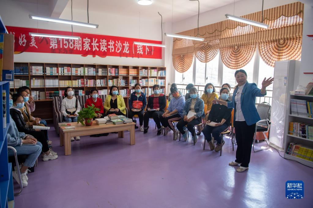 4月21日,在“读书好美”家长读书沙龙活动上,西沱镇小学老师在和学生家长分享教育经验。