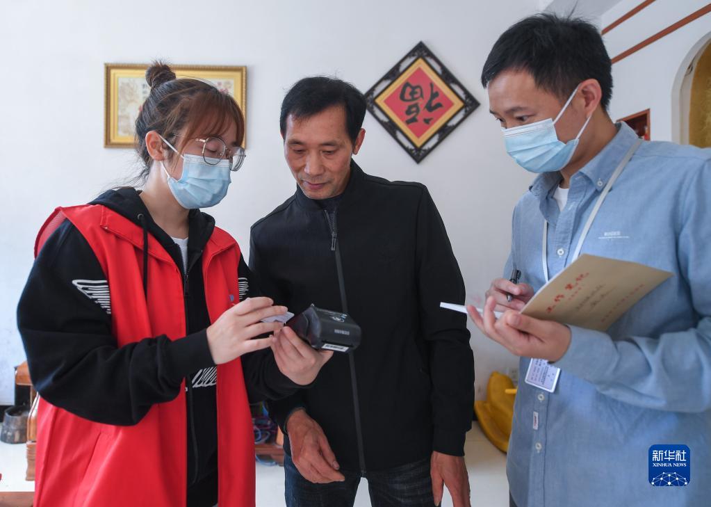 4月22日,党员干部走访使用“重阳分”享受相关服务的老人家属(中),询问对于养老服务项目的意见。