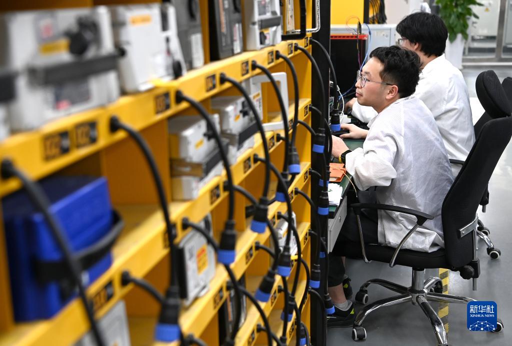 4月21日,西安领充新能源公司换电实验室的工作人员进行换电产品调试。