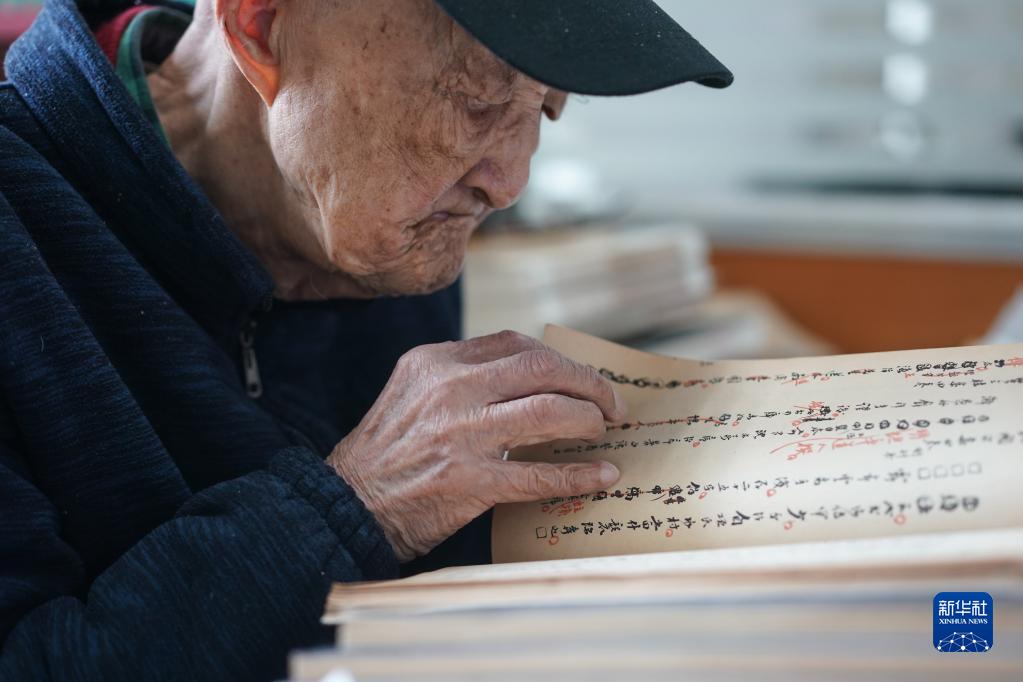 南京图书馆五楼,古籍编目办公室。年近百岁的古籍版本目录学家沈燮元临窗而坐,桌上摆满清代藏书家黄丕烈题跋的各版抄本。比对考证,查漏补缺,将错处用修正液涂去,再用红笔仔细标注,沈老先生埋头对苦心编纂数十年的《士礼居题跋》书稿进行二校,静如止水。一缕阳光洒进来,将老人和书镀上一层金色,时光仿佛静止。